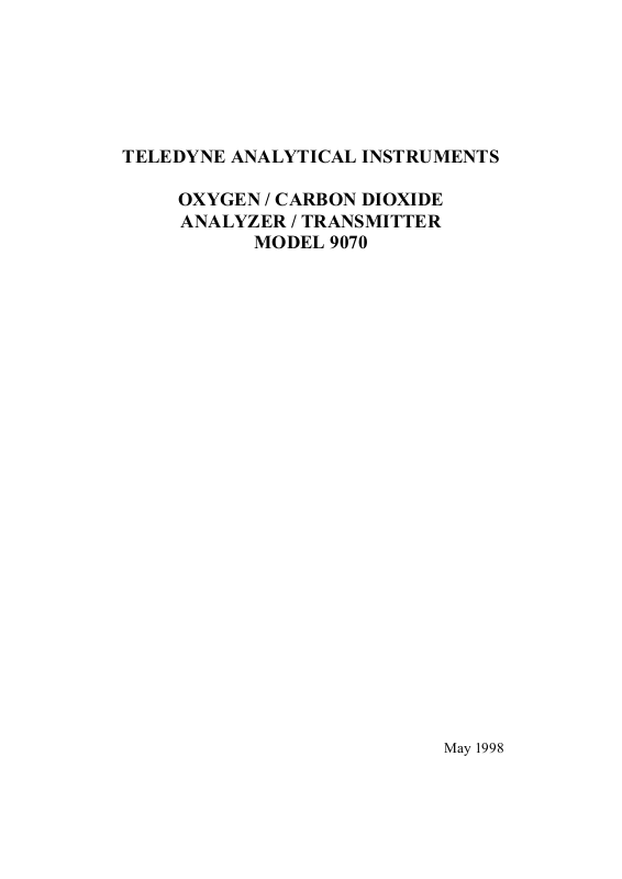 obtained upon request from Teledyne Analytical Instruments Technical Enquires. Teledyne Analytical Instruments