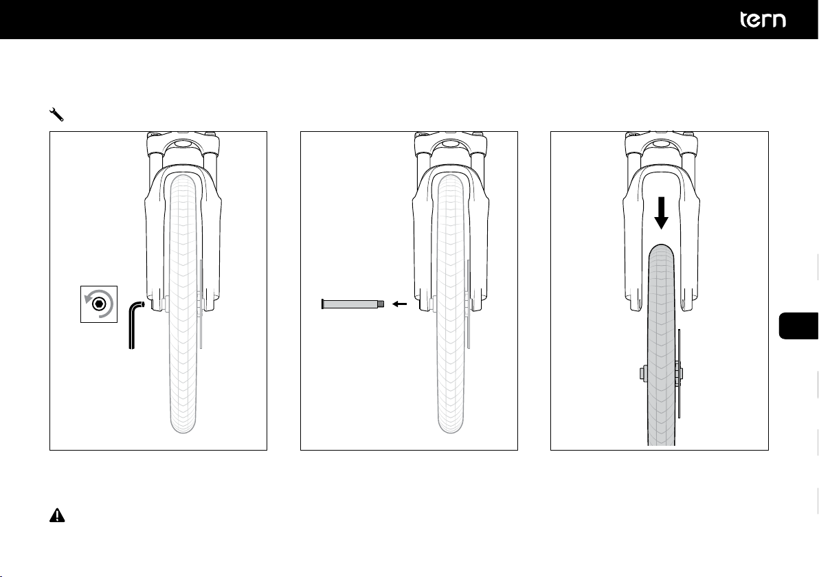 sull’altro lato in modo che i forcellini siano allineati. Spingi in avanti la ruota fino a che la Vite di Registro tocca contro il telaio.