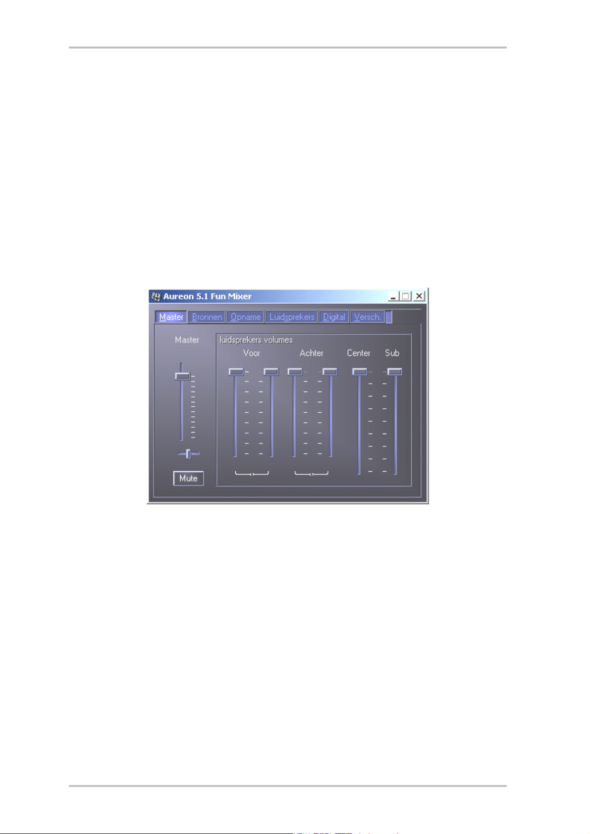 De masterregelaar stuurt de som van alle uitgangen aan en het geluid kan bovendien met een