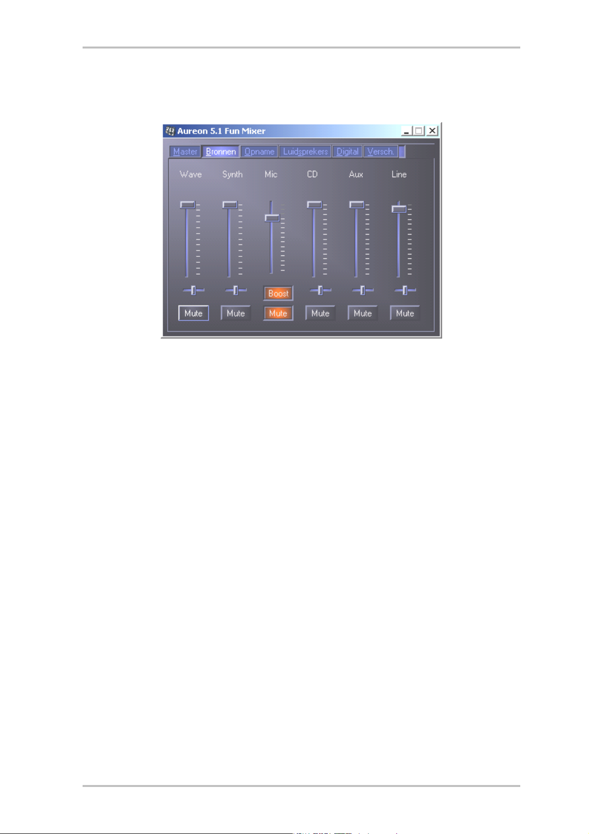 Hier stelt u het volume van de afzonderlijke signaalbronnen in.