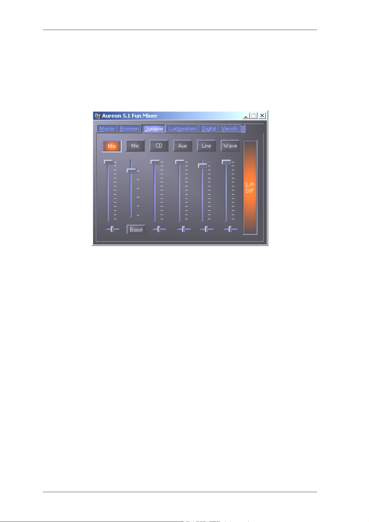 moeten worden. De knop “Mix” maakt het mogelijk, alle aanliggende bronnen tegelijkertijd