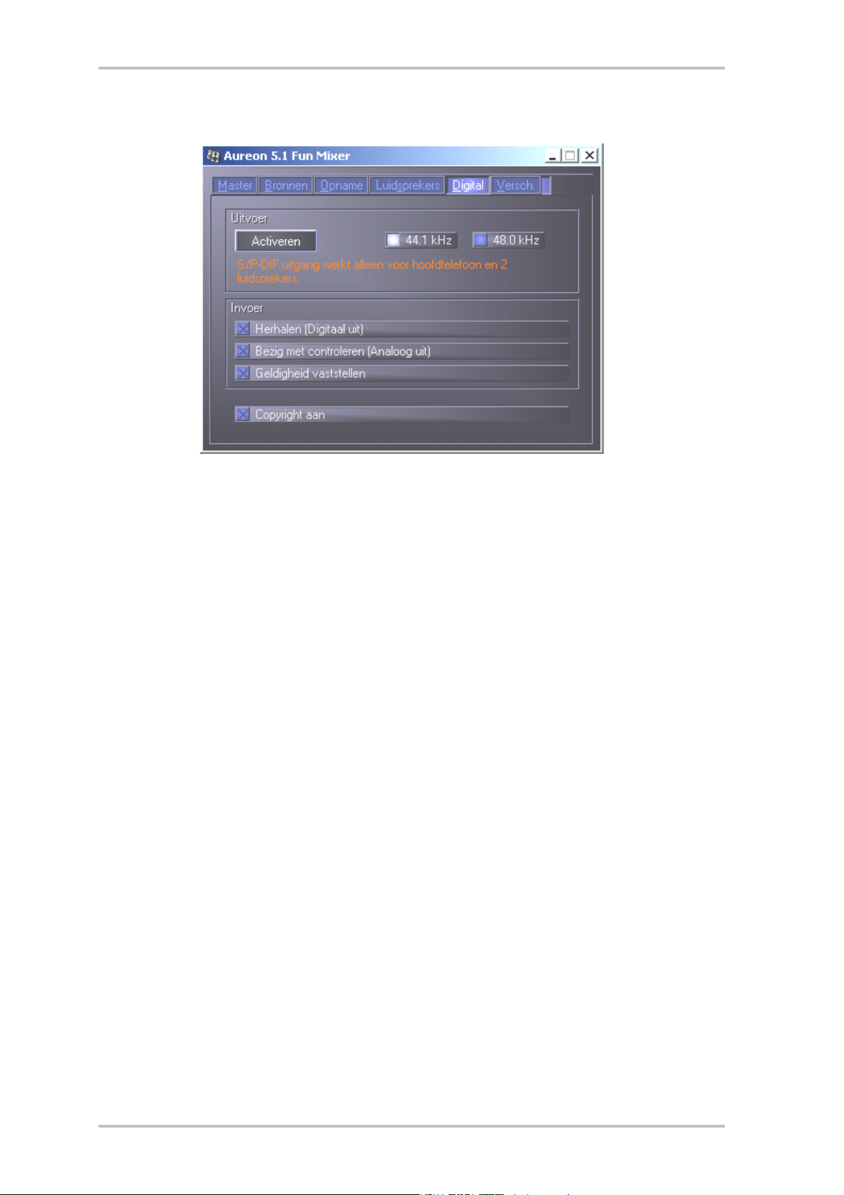 Deze knop activeert / deactiveert de digitale audio-uitgang.