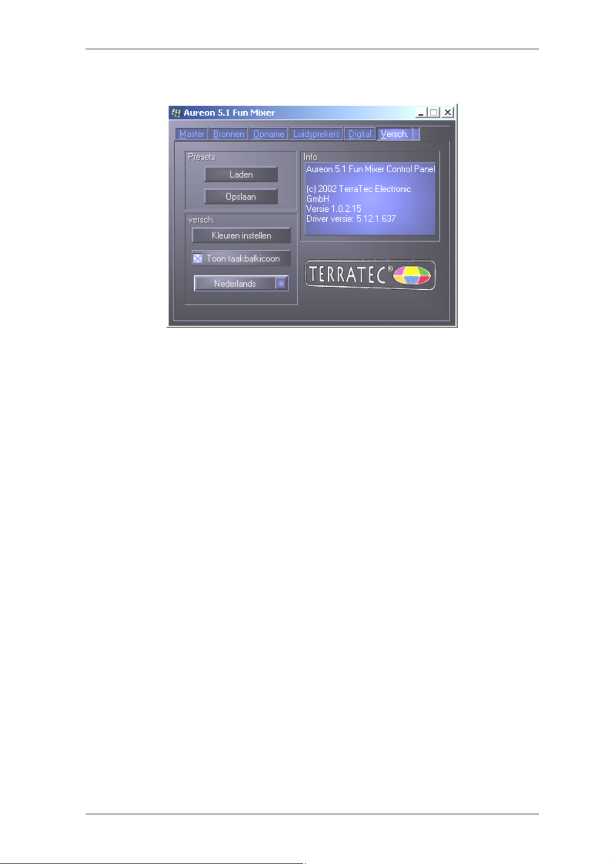 In dit venster kunt u zien, welke stuurprogramma- resp. bedieningspaneel-versie u op uw