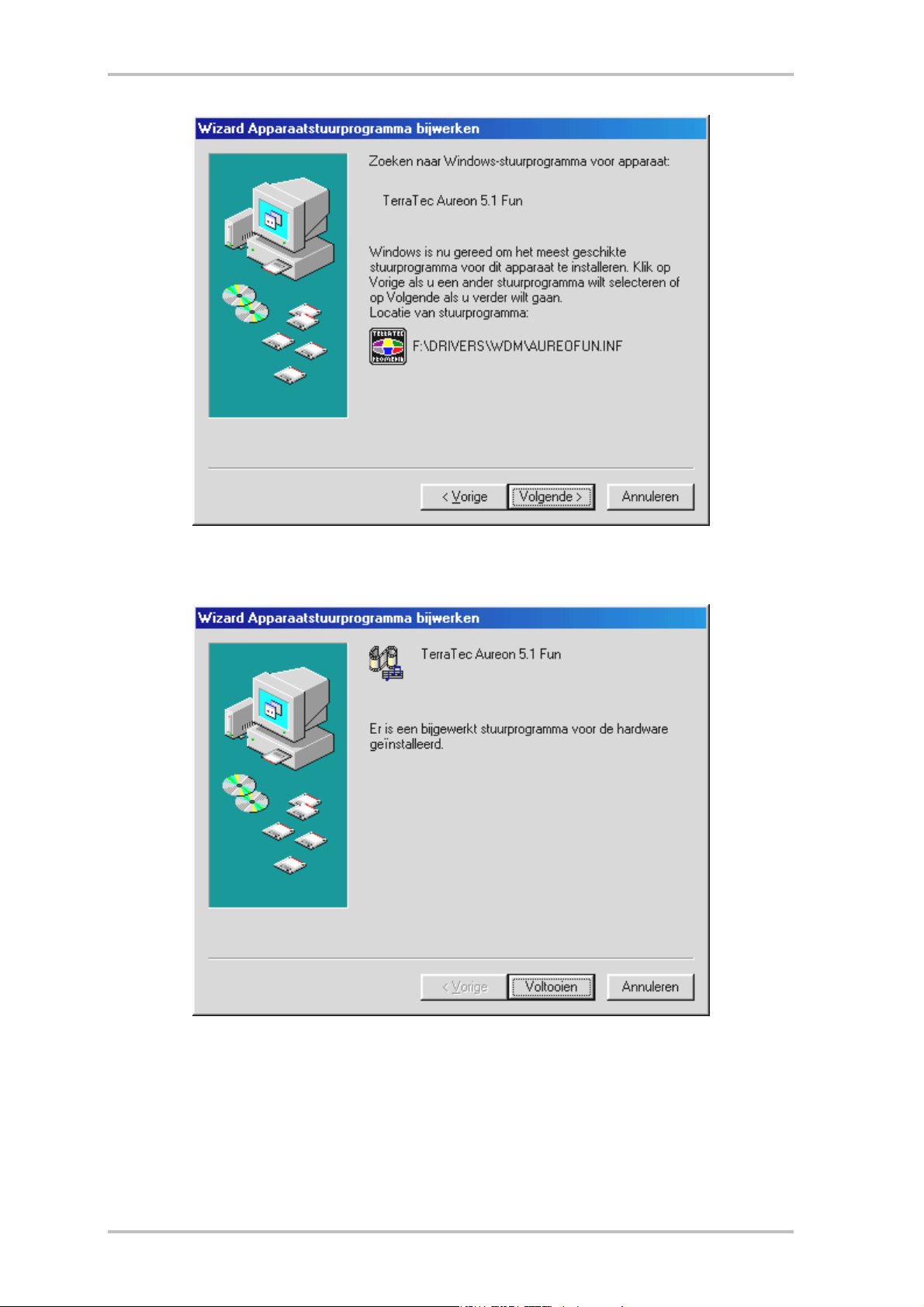 geïnstalleerd. Start hiervoor de AUTORUN.EXE in de rootdirectory van de Aureon 5.1