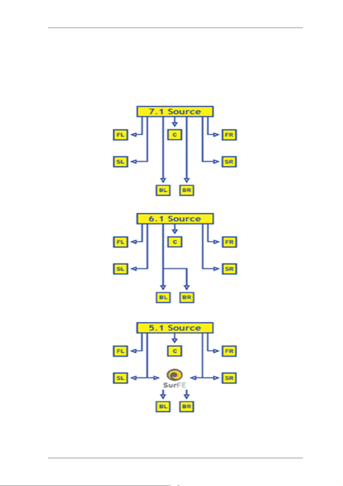 La technologie Surround Field Enhancement (SurFE) génère à partir d'une source audio 5.1 un