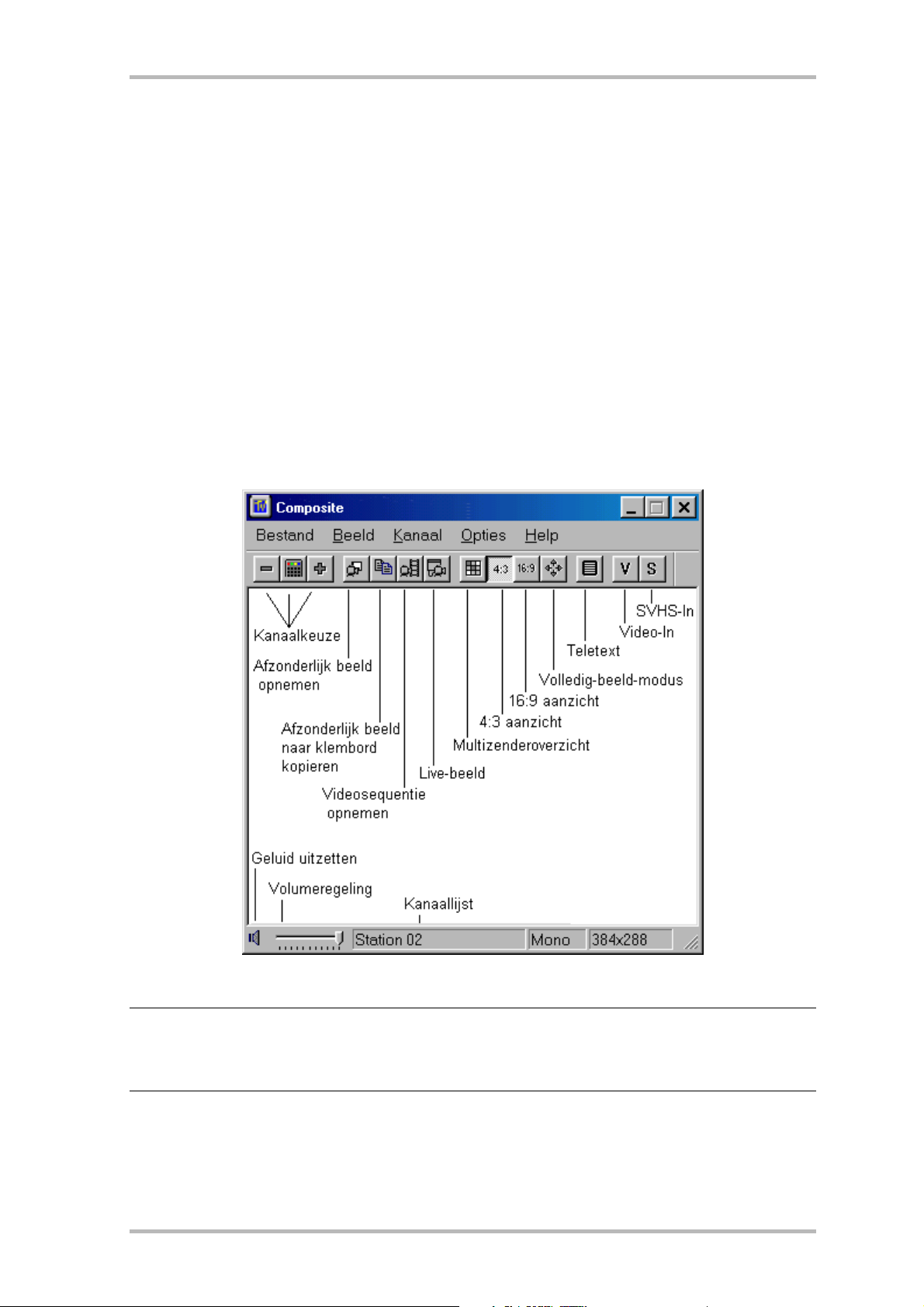 van het TV-beeld op uw PC-monitor. Het weergavebeeldscherm kunt u tot een grootte van 768 x