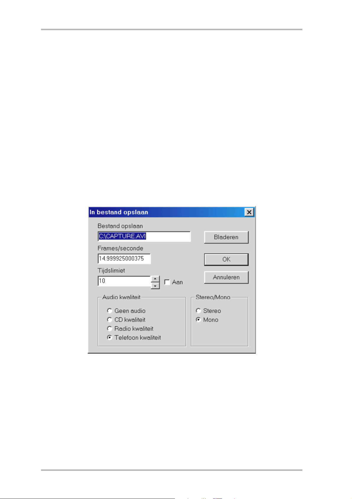 · Om überhaupt een videosequentie met geluid te kunnen opnemen, moet eerst de uitgang