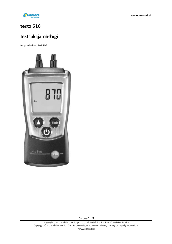 Testo 510 jest miernikiem różnicy ciśnień. Zazwyczaj jest używany do pomiaru niewielkich zmian w
