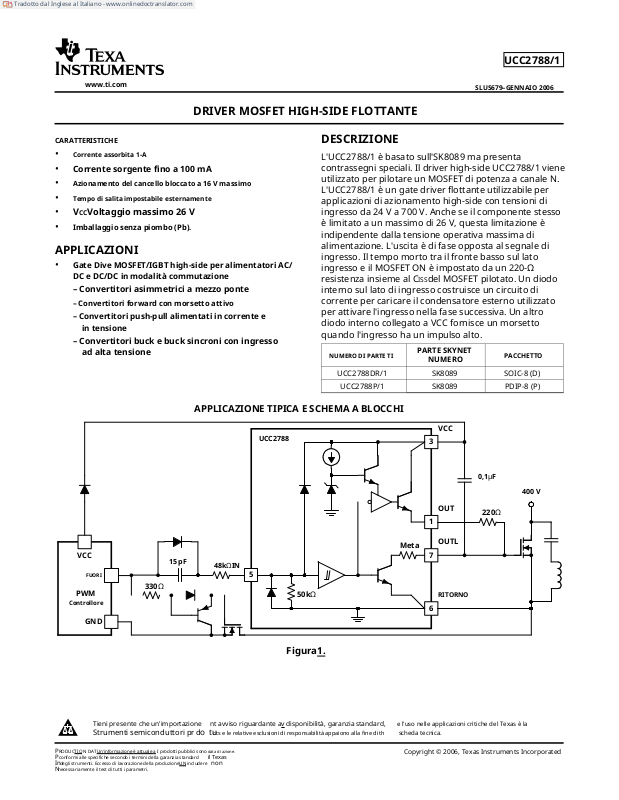 contrassegni speciali. Il driver high-side UCC2788/1 viene