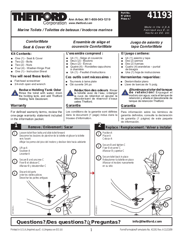 Printed in U.S.A./Imprimé aux É.-U./Impreso en EE.UU Form/Formulaire/Formulario No. 41191 Rev. A 11/13/09