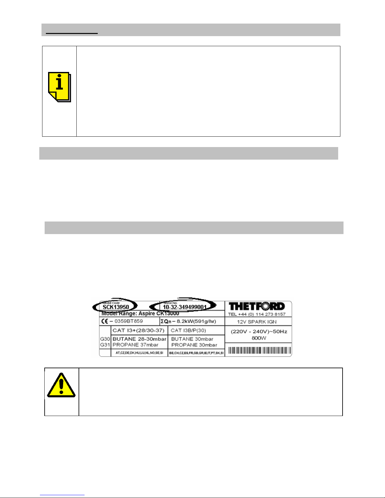 This appliance is suitable for installation into Holiday Homes, Touring Caravans and Boats. In all cases the national standards with regard to ventilation for the particular vehicle into which the appliance is to be installed must be adhered to. The European Standard EN1949 - "Specification for the installation of LPG systems in leisure and other road vehicles", specifies appliances be installed in accordance with the manufacturer’s instructions, including the adequate provision to avoid the accumulation of un-burnt gases. We recommend a floor vent, venting to the outside, with minimum size Ø12mm, maximum Ø50mm, which should be baffled to prevent direct draughts to the appliance.