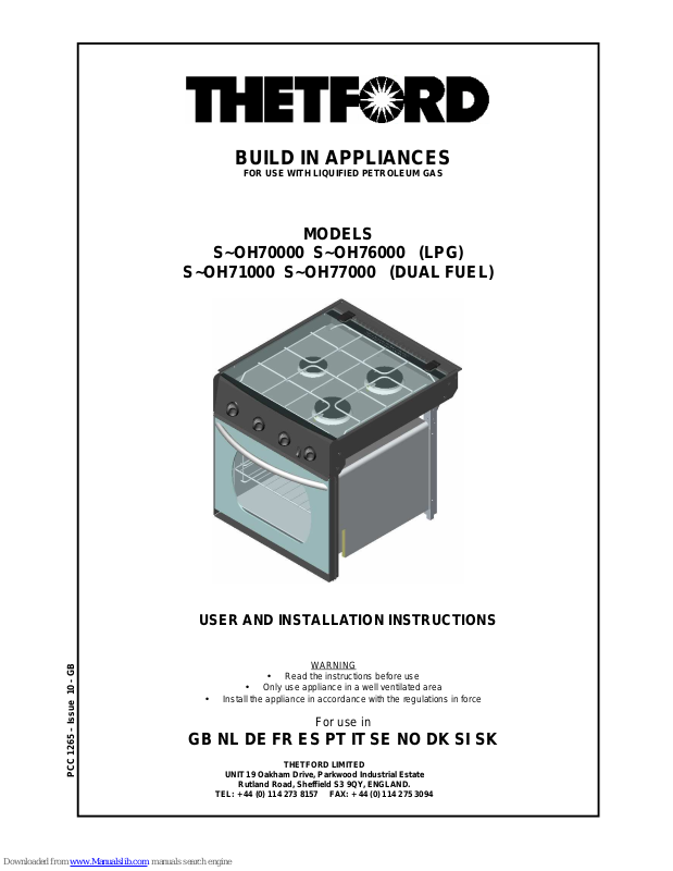 Thetford S-OH70000, S-OH71000, S-OH76000, S-OH77000 User And Installation Instructions Manual