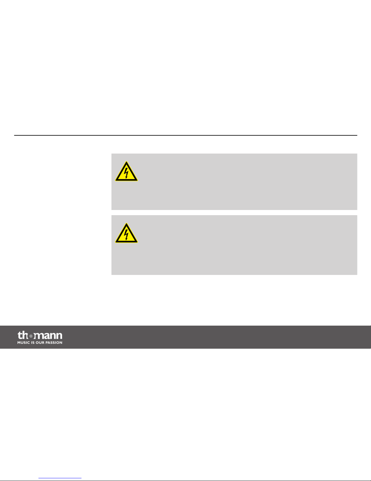Always use proper ready-made insulated mains cabling (power cord) with a pro‐