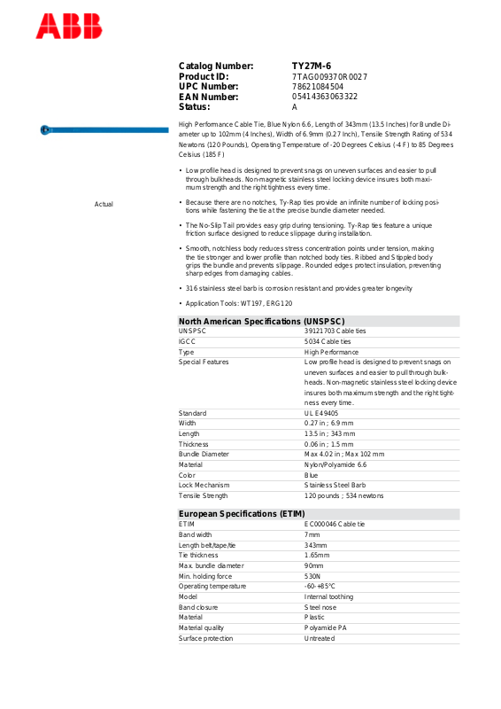 • The No-Slip Tail provides easy grip during tensioning. Ty-Rap ties feature a unique
