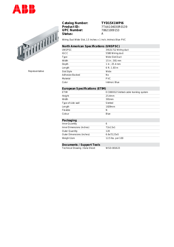 Wiring Duct Wide Slot, 1.5 Inches x 1 Inch, Intrinsic Blue PVC