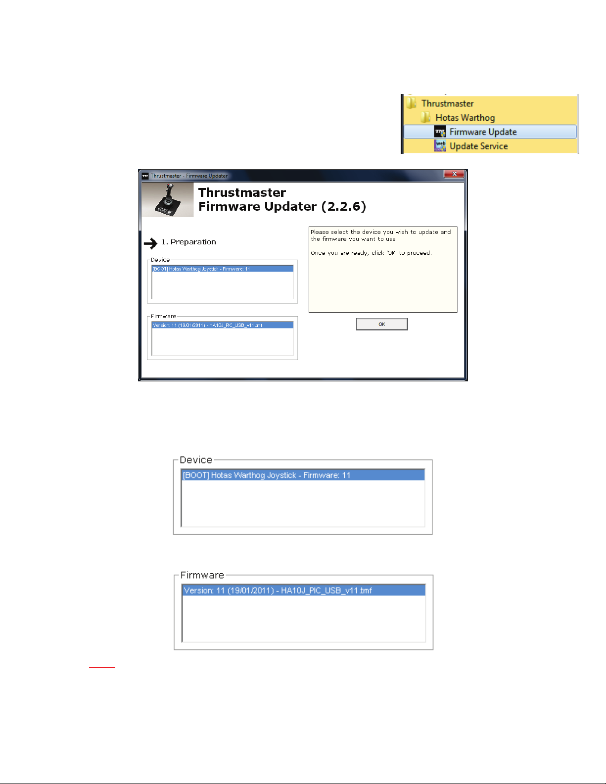 Select Start > All Programs > Thrustmaster > Hotas Warthog, then click Firmware Update.