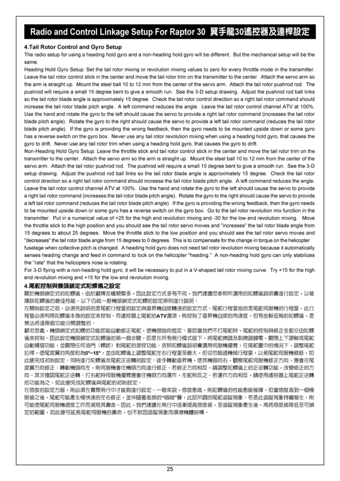 Thunder Tiger 30 CLASS RC HELICOPTER User Manual