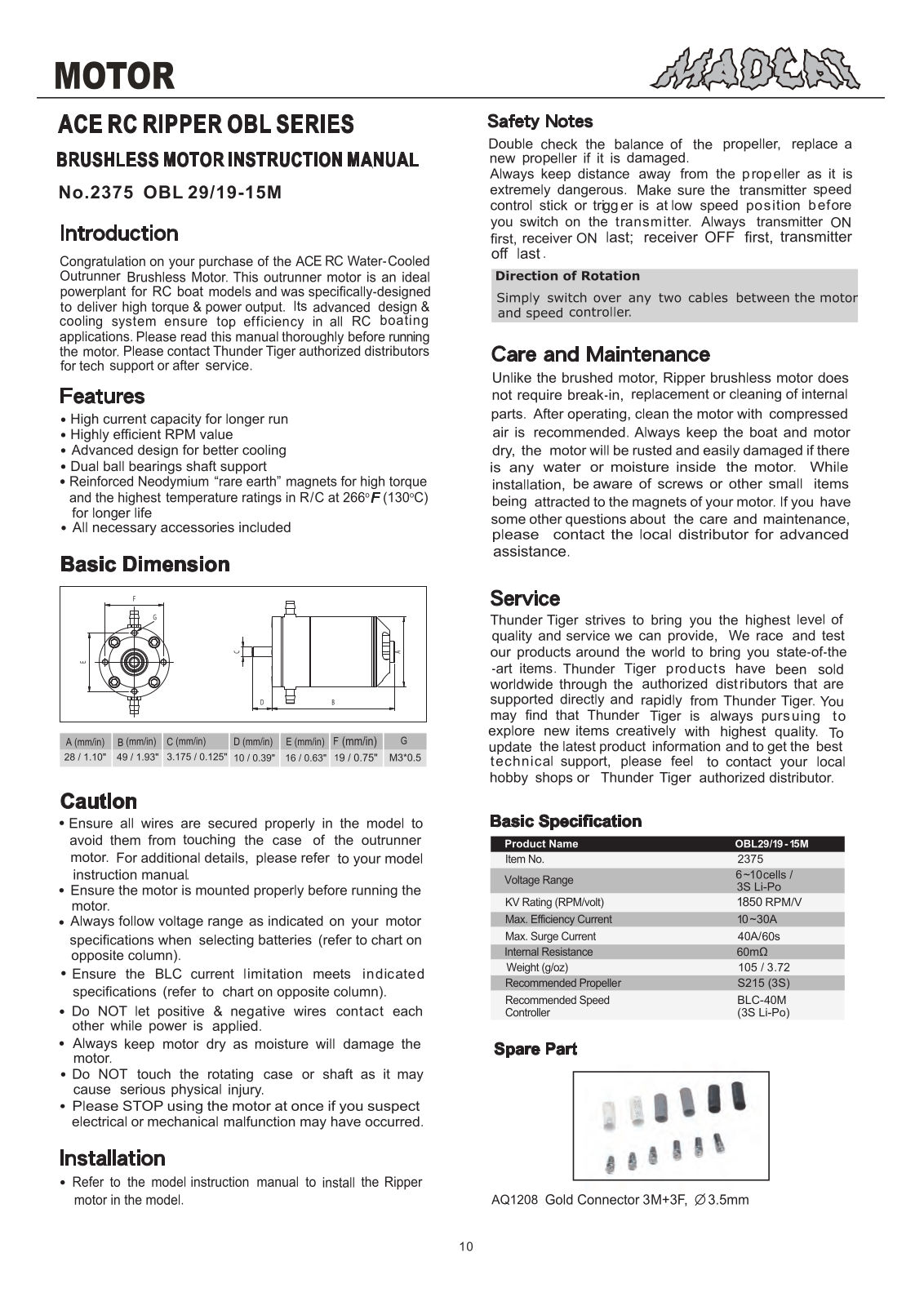 Thunder Tiger Assembly Manual