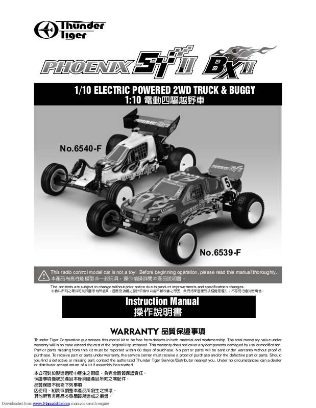 Thanks you for purchasing a Thunder Tiger product. Please read all instructions thoroughly before operation.