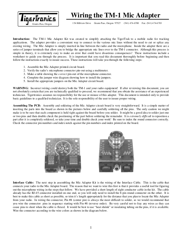 Introduction: The TM-1 Mic Adapter Kit was created to simplify attaching the TigerTrak to a mobile radio for tracking