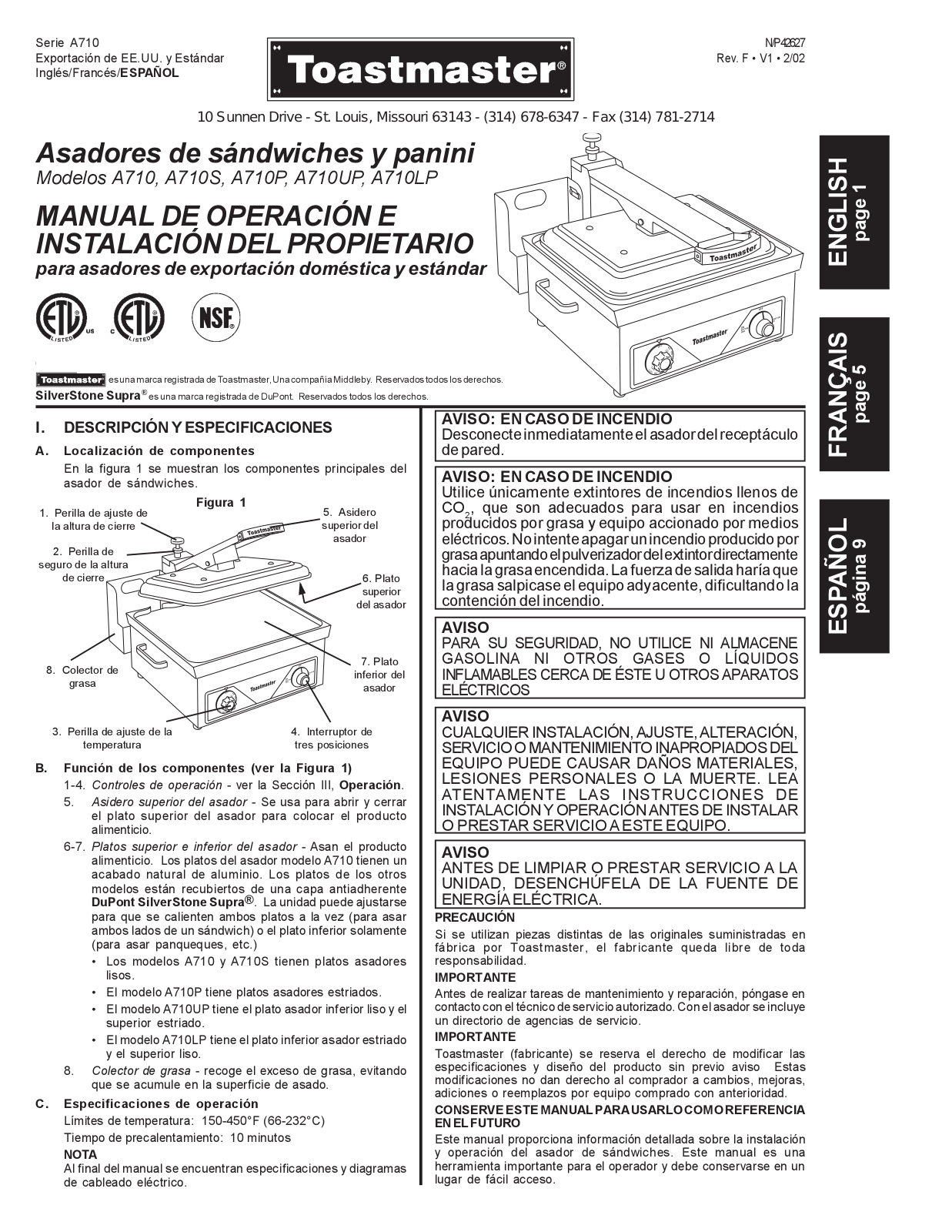 Toastmaster A710S, A710, A710P User Manual 2