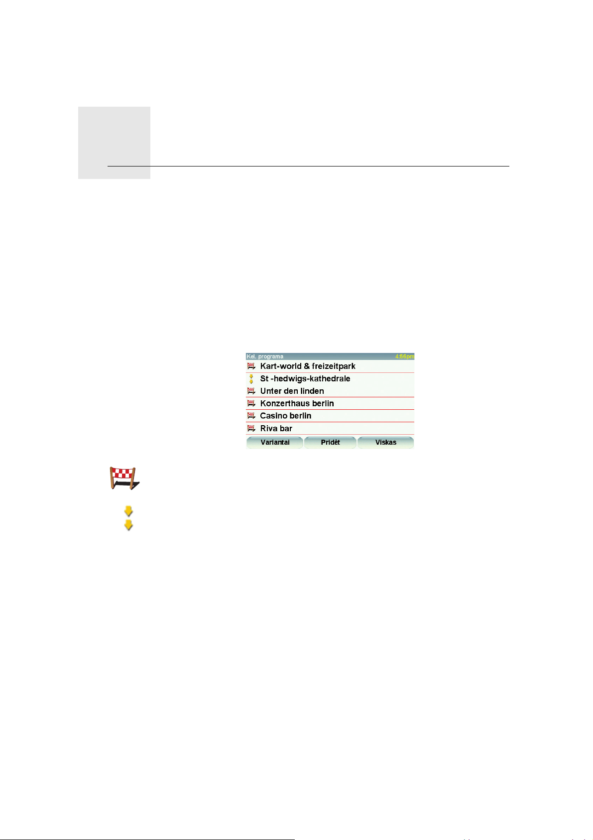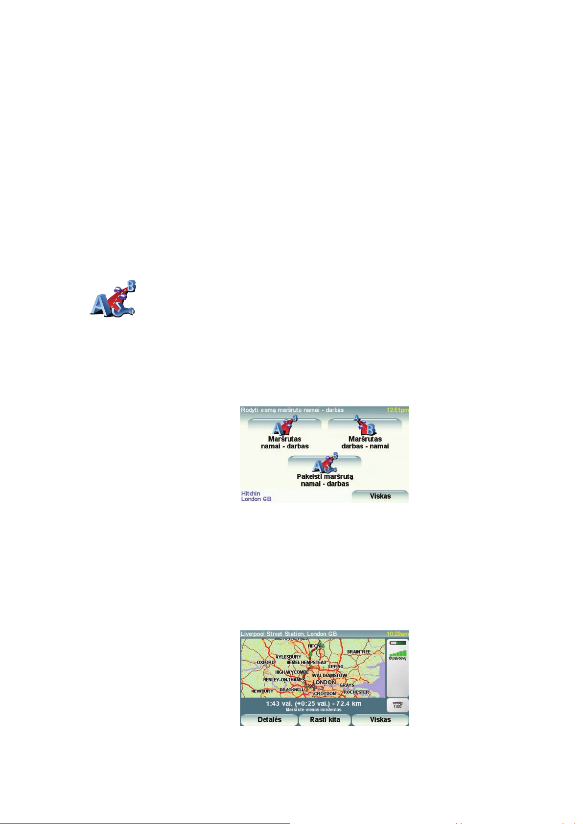 D Navigacijos instrukcijos apie tolimesnį kelią.