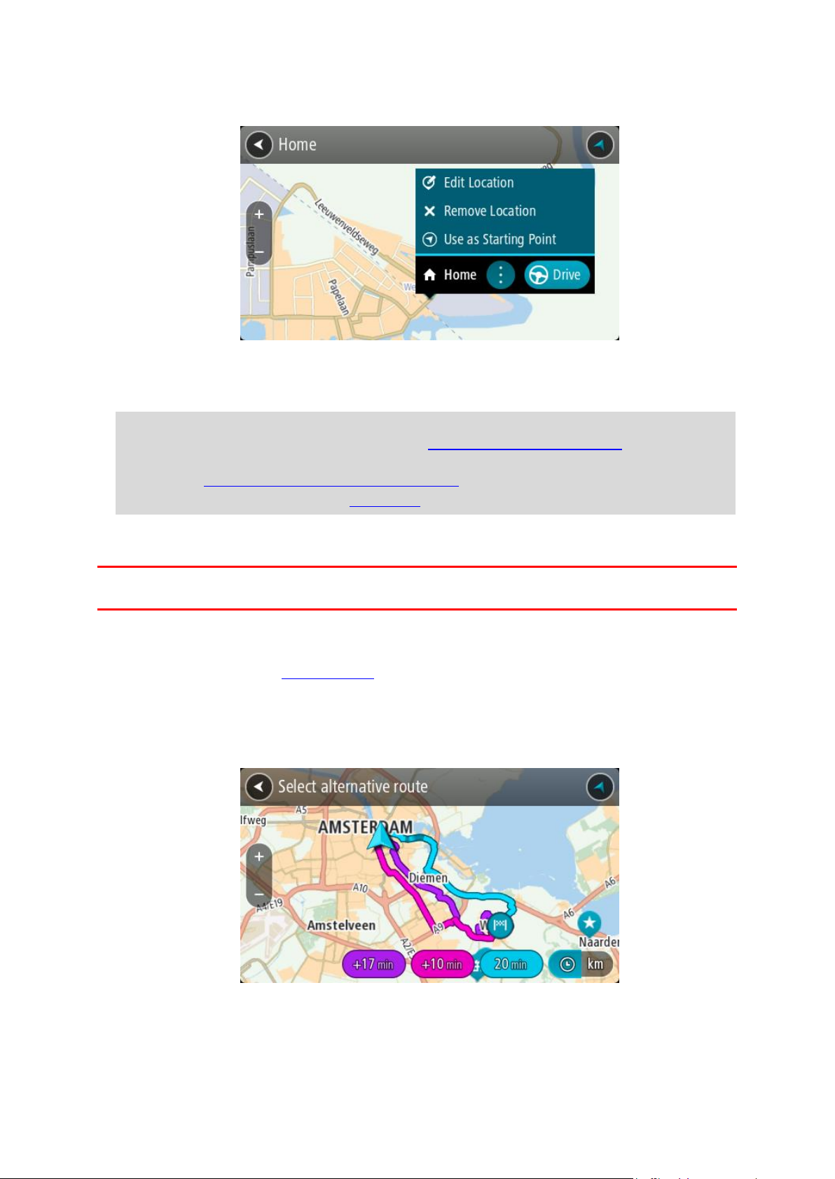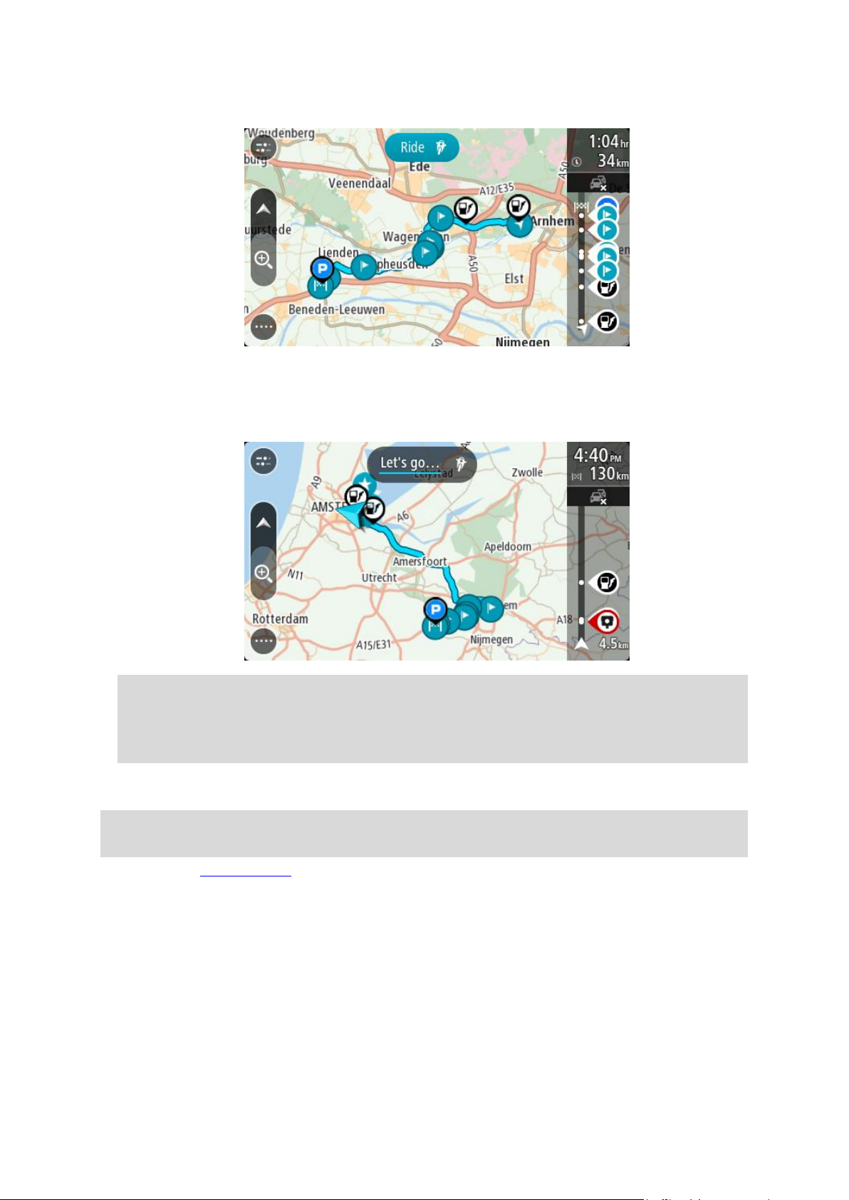 Om je eerste route te plannen, ga je naar Een route plannen.