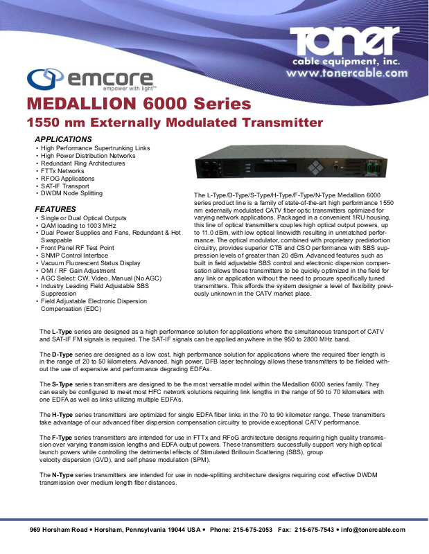 969 Horsham Road lHorsham, Pennsylvania 19044 USA l Phone: 215-675-2053 Fax: 215-675-7543 linfo@tonercable.com