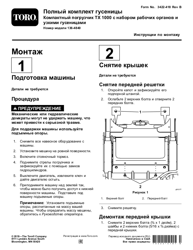 2.Ослабьте2верхнихболтаиотверните2