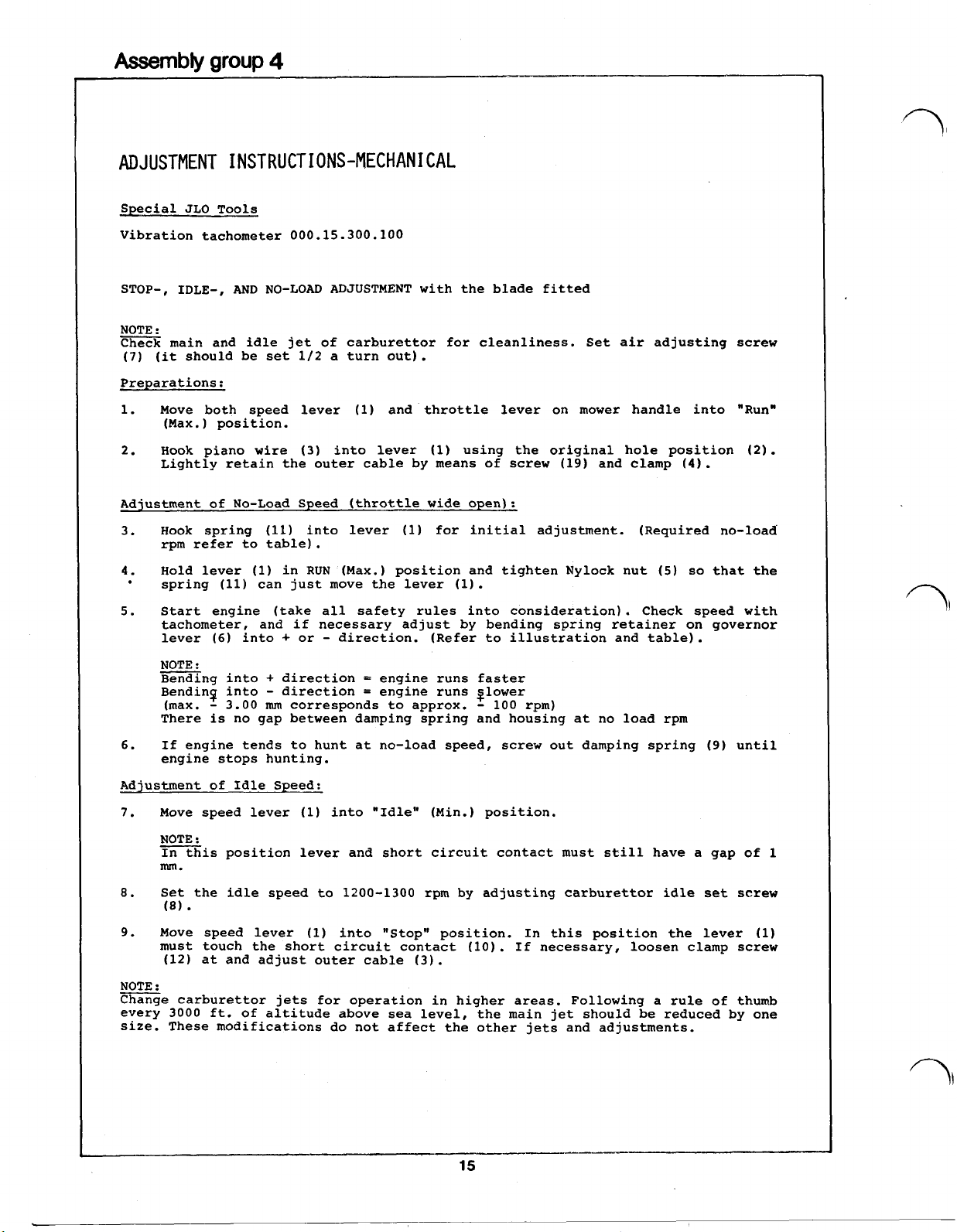 SPEED CONTROL - RM 252 FLYBALL GOVERNORADJUSTMENT INSTRUCTIONS - MECHANICALSPEED CONTROL--L 252 TOP SPEED LIMITER