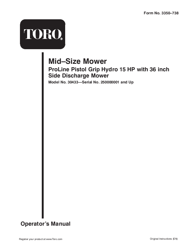 Model No. 30433—Serial No. 250000001 and Up