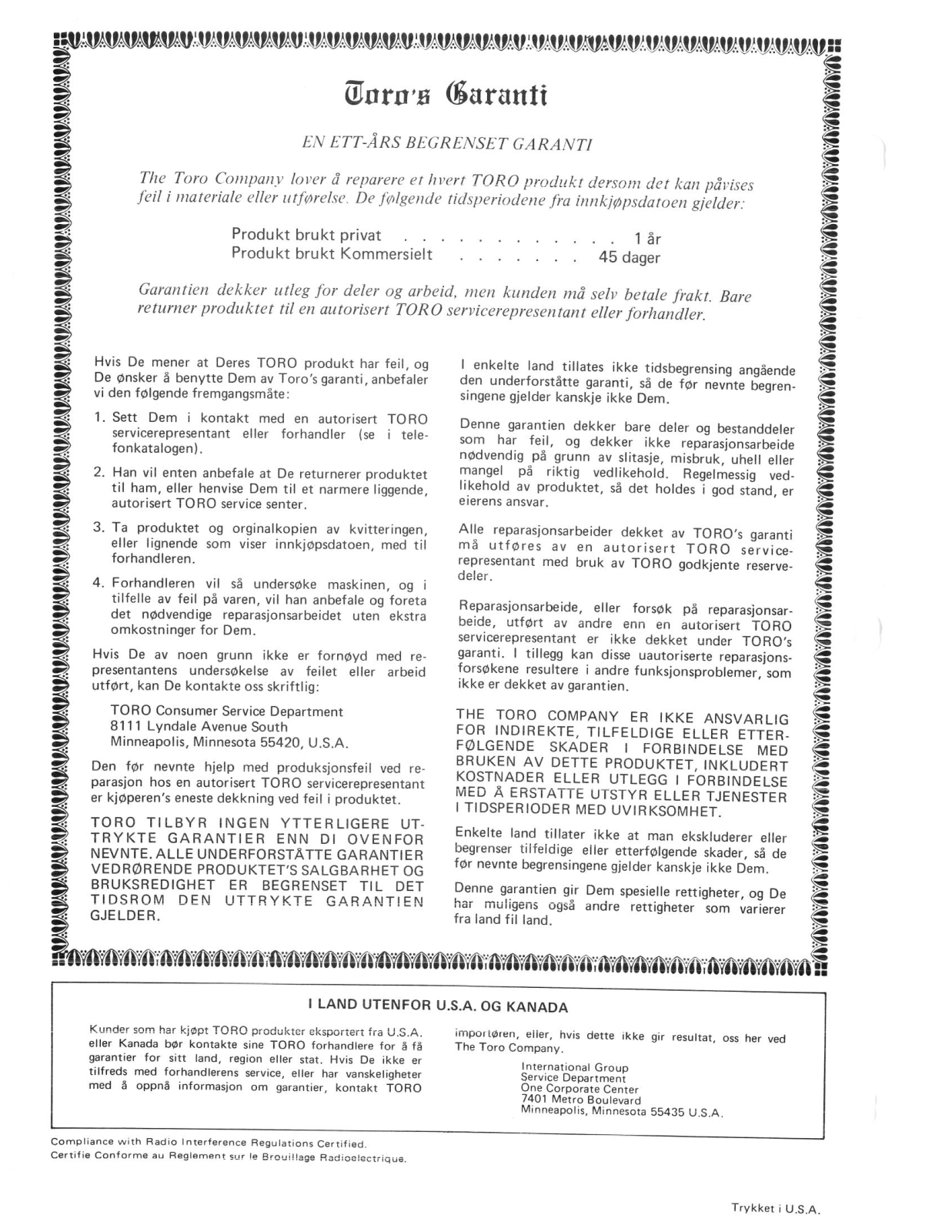 Toro Operator's Manual