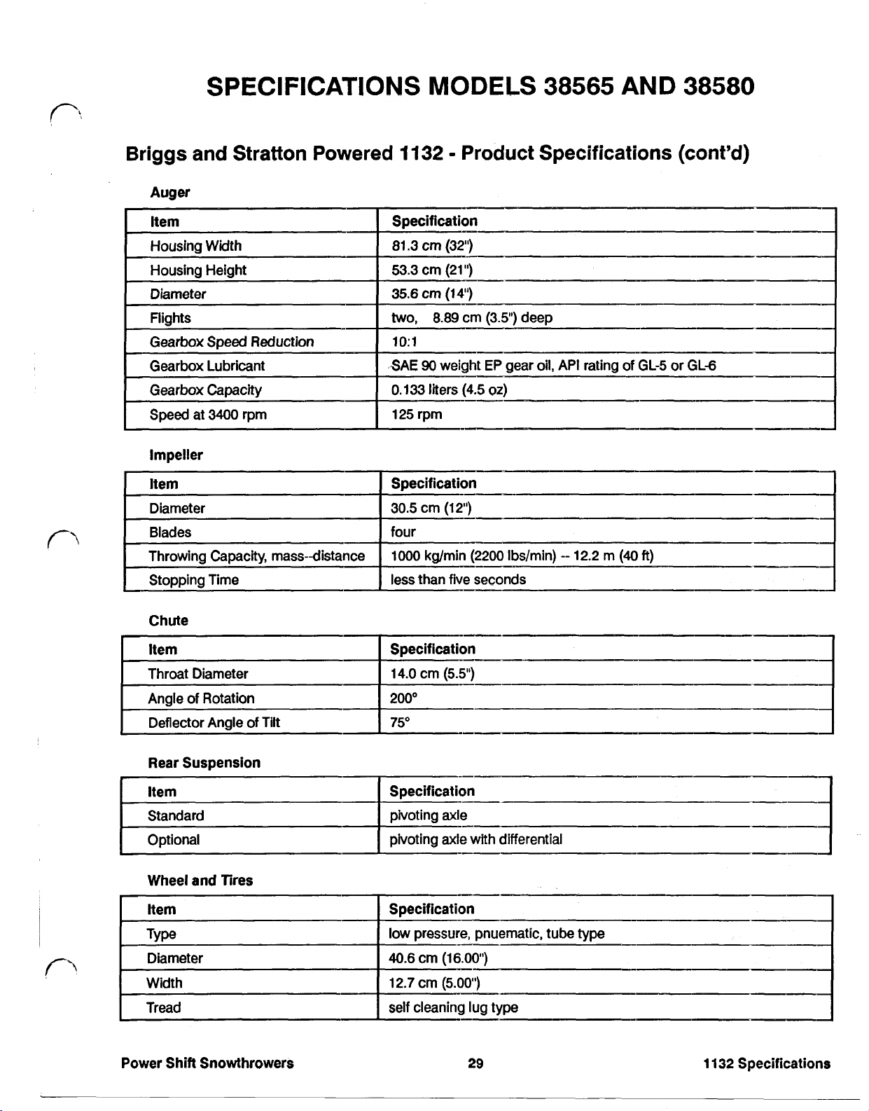 BRIGGS AND STRATTON POWERED 1132 - ENGINE SPECIFICATIONS*BRIGGS AND STRATTON POWERED 1132 - PRODUCT SPECIFICATIONSTORQUE SPECIFICATIONS
