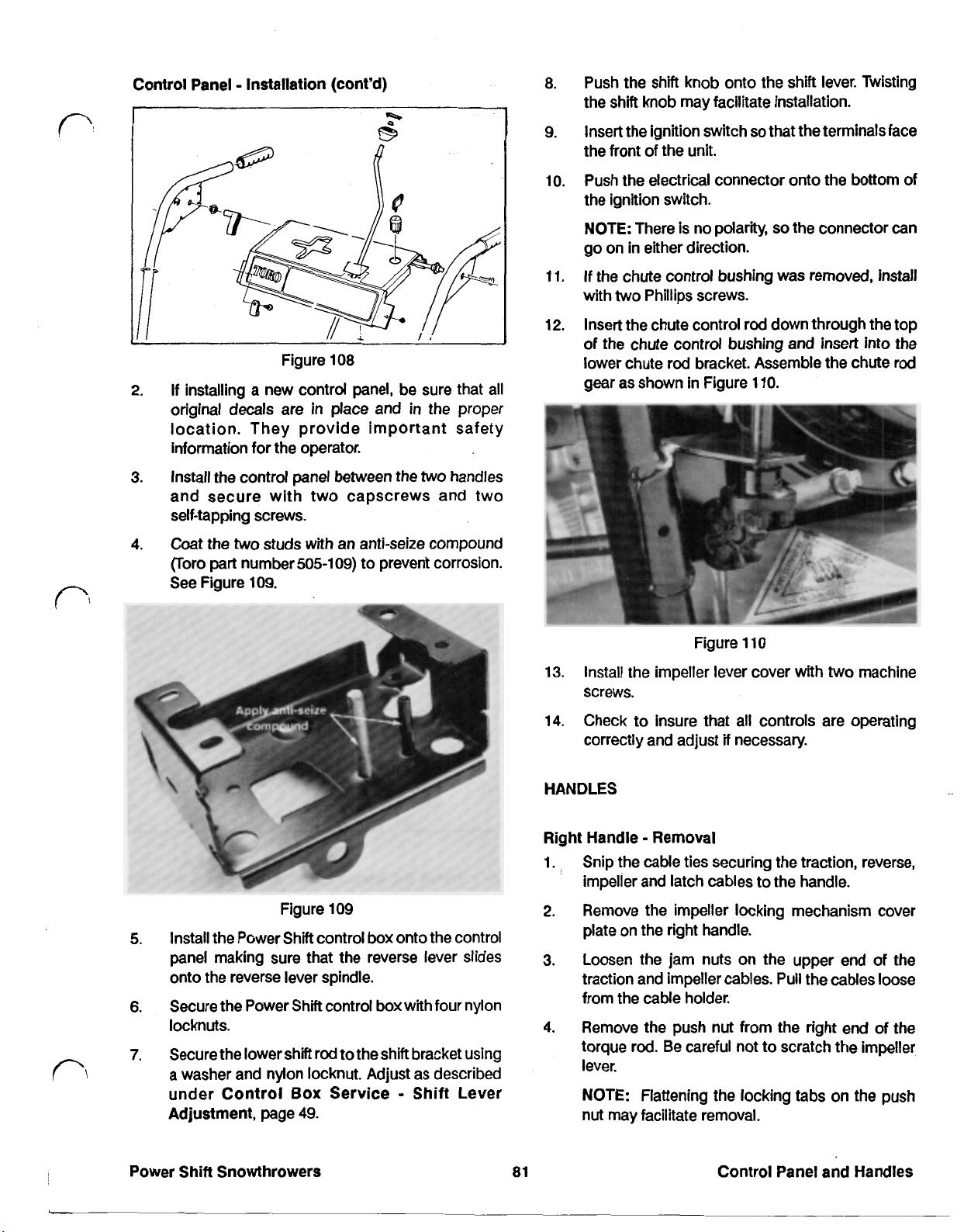 OPERATIONOPERATION - IMPELLER CONTROLOPERATION - IMPELLER LOCKING MECHANISMTRACTION AND IMPELLER CONTROLSTRACTION AND IMPELLER CONTROLS - INSPECTIONTRACTION AND IMPELLER CONTROLS - REASSEMBLYTRACTION AND IMPELLER CONTROLS - TRACTION CABLE ADJUSTMENTTRACTION AND IMPELLER CONTROLS - IMPELLER CABLE ADJUSTMENT