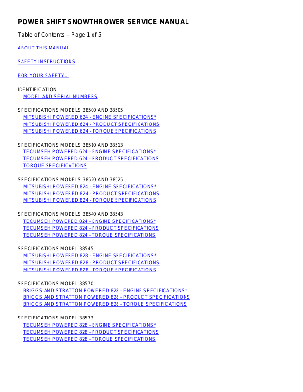 Power Shift Snowthrowers. The Tor0 Company has made every effort to make the