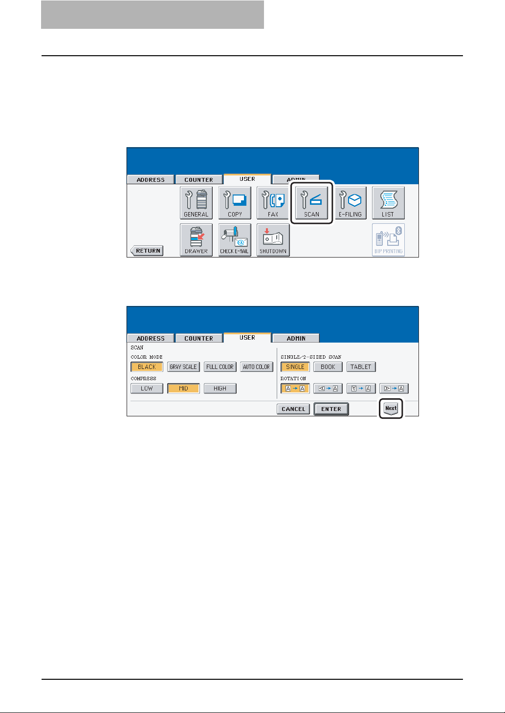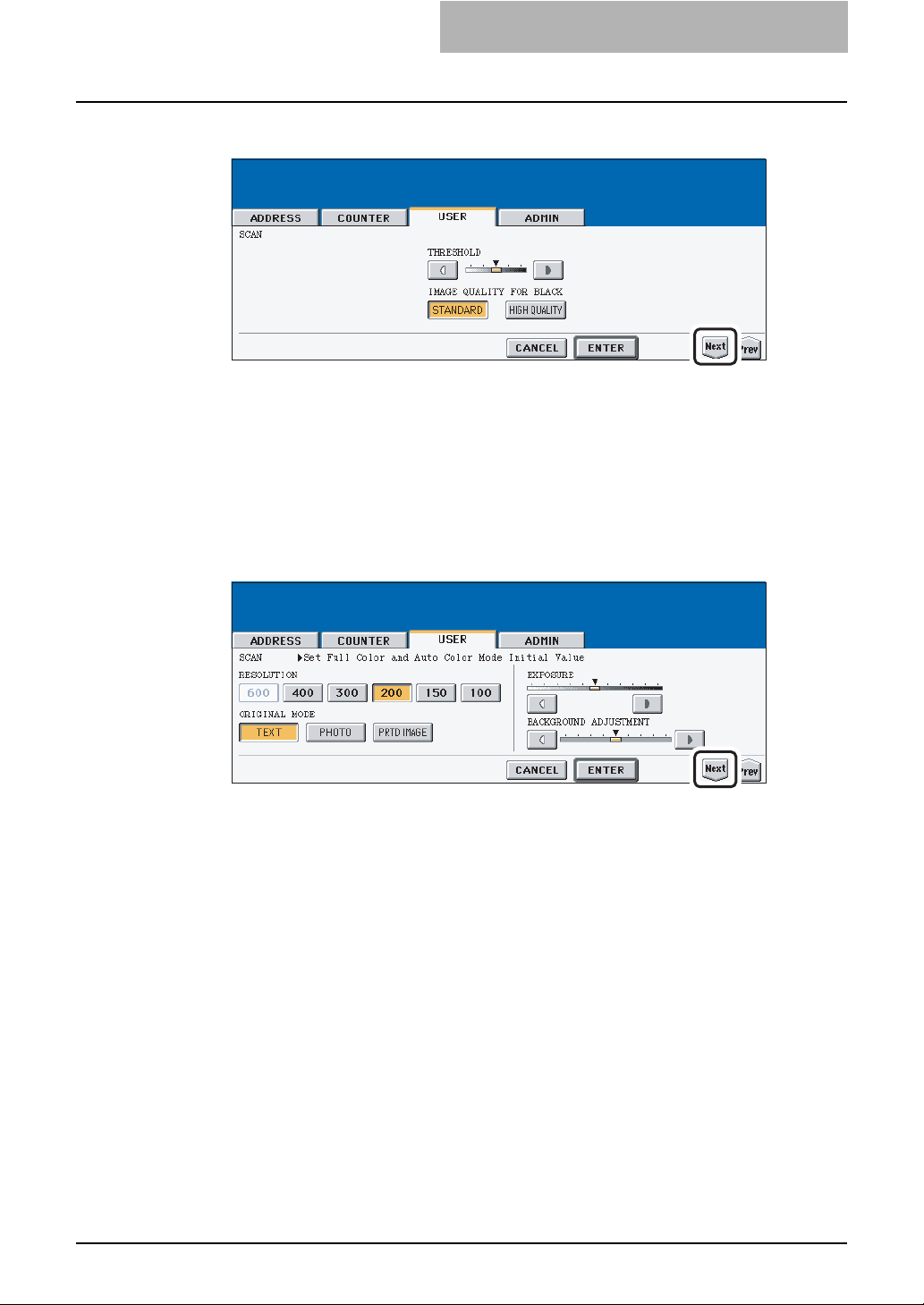 y In the “RESOLUTION” option, press the desired mode button applied for black scans.