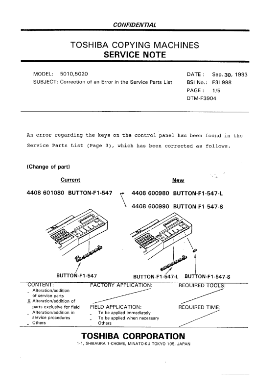 Toshiba Service Note