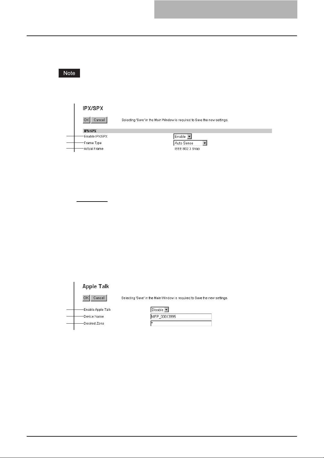 Select whether the Web-based TopAccess and IPP printing are enabled or disabled.