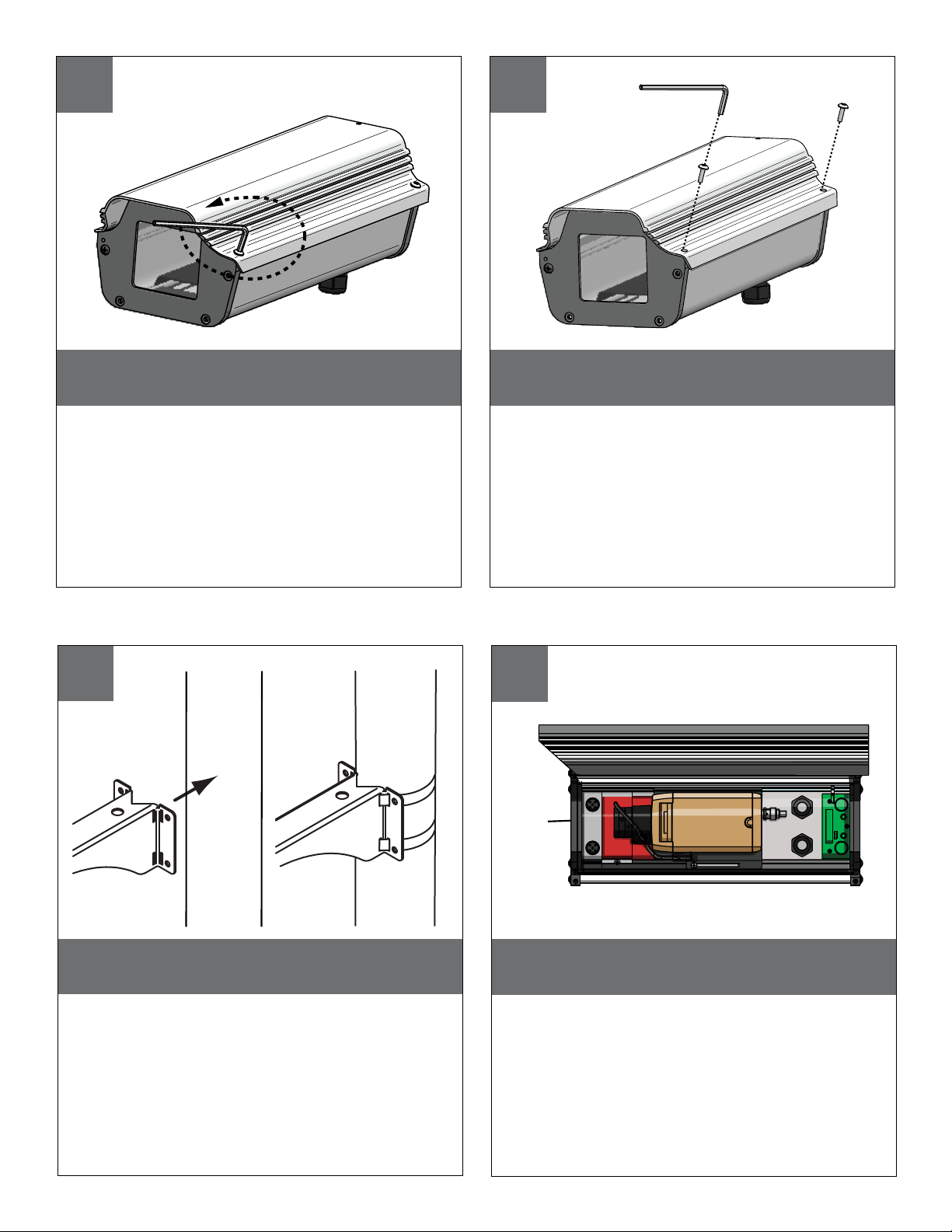 • Rimuova (2) le viti in cima all'alloggiamento ed alzile aperte.