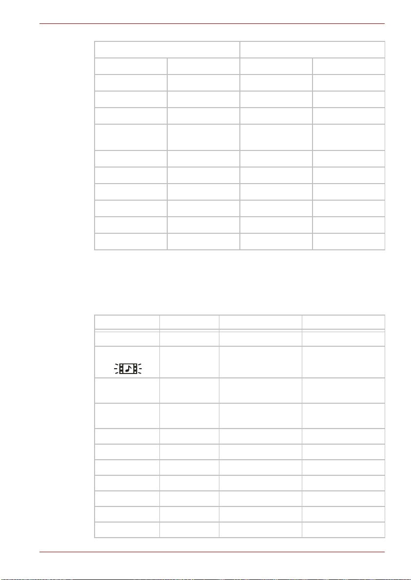 As shown in the above table, the Battery, DC IN and Power indicators alert