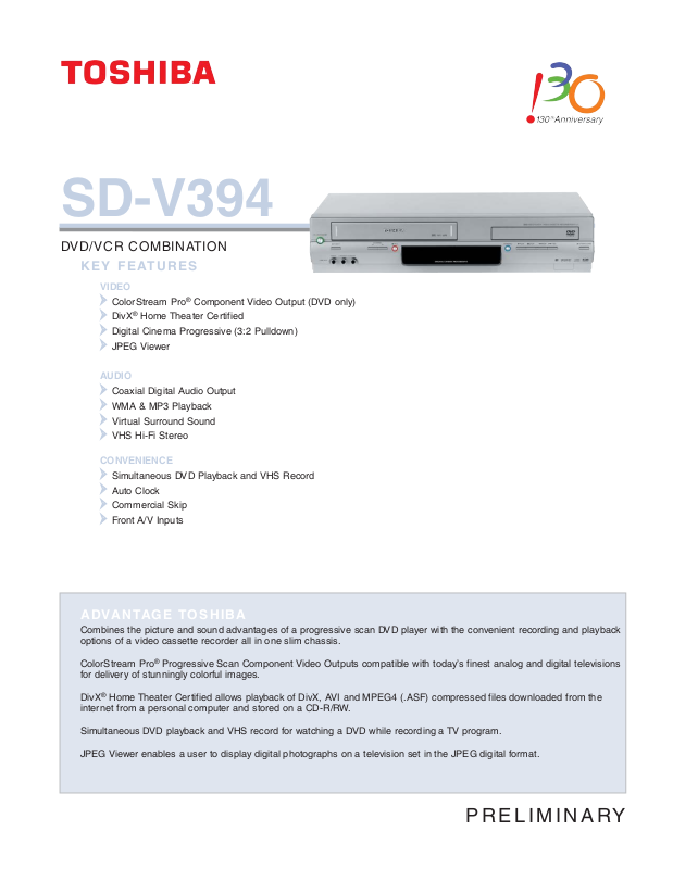 trademark of Toshiba America Consumer Products, L.L.C. DivX is a registered trademark of DivX, Inc. Product design and specification subject to