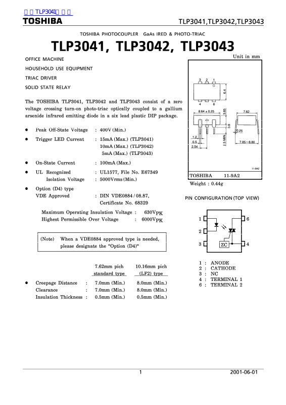 TOSHIBA TLP3041, TLP3042, TLP3043 Technical data