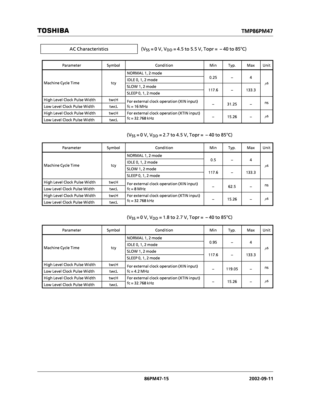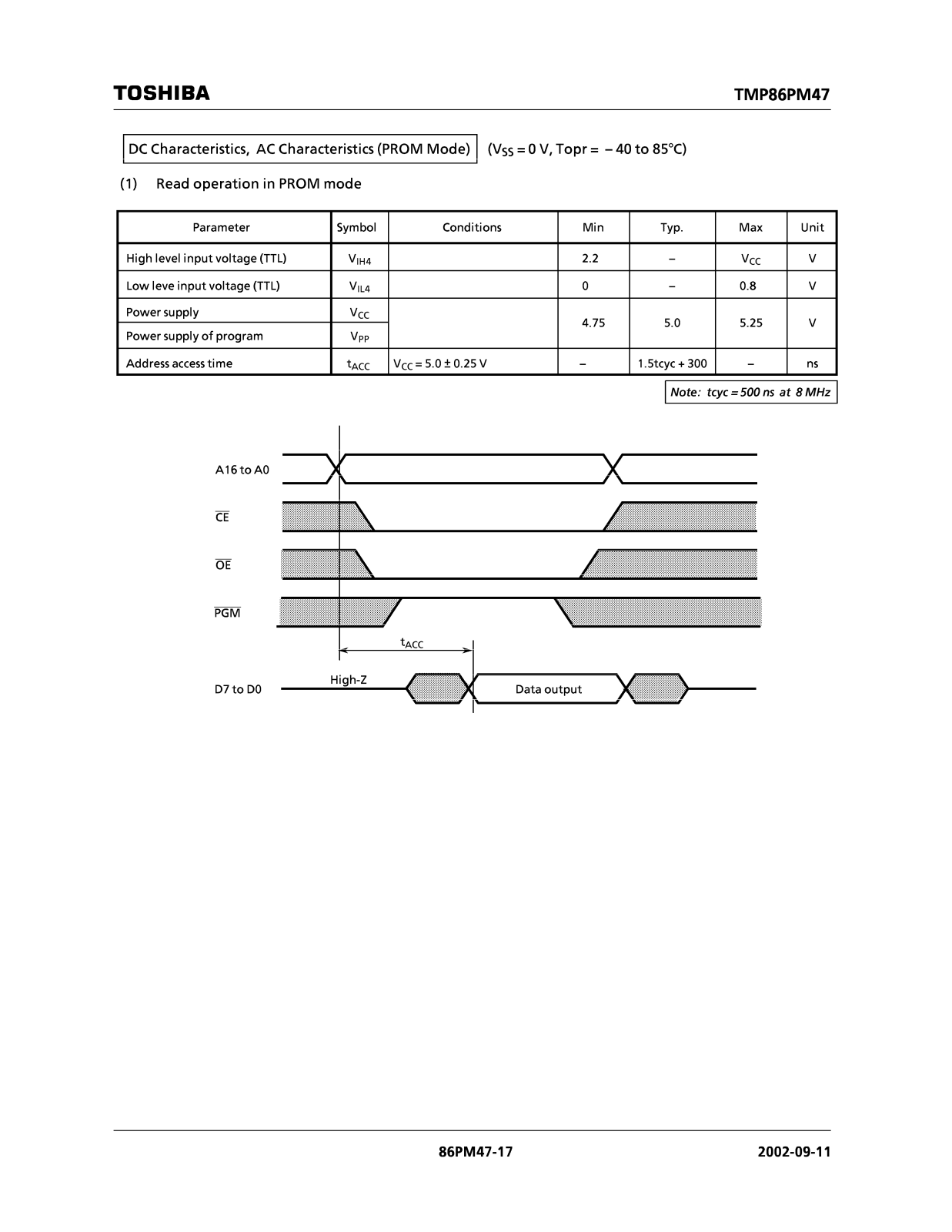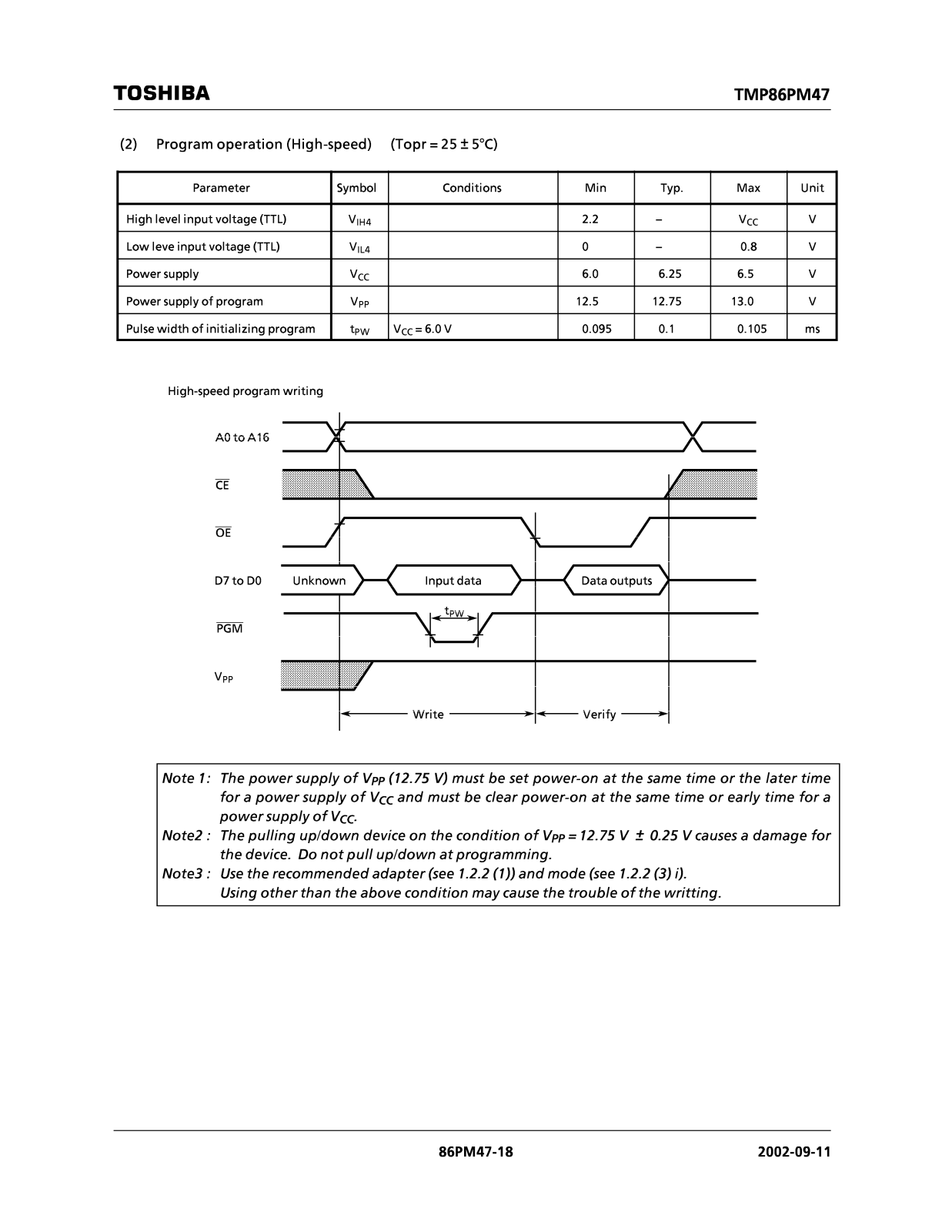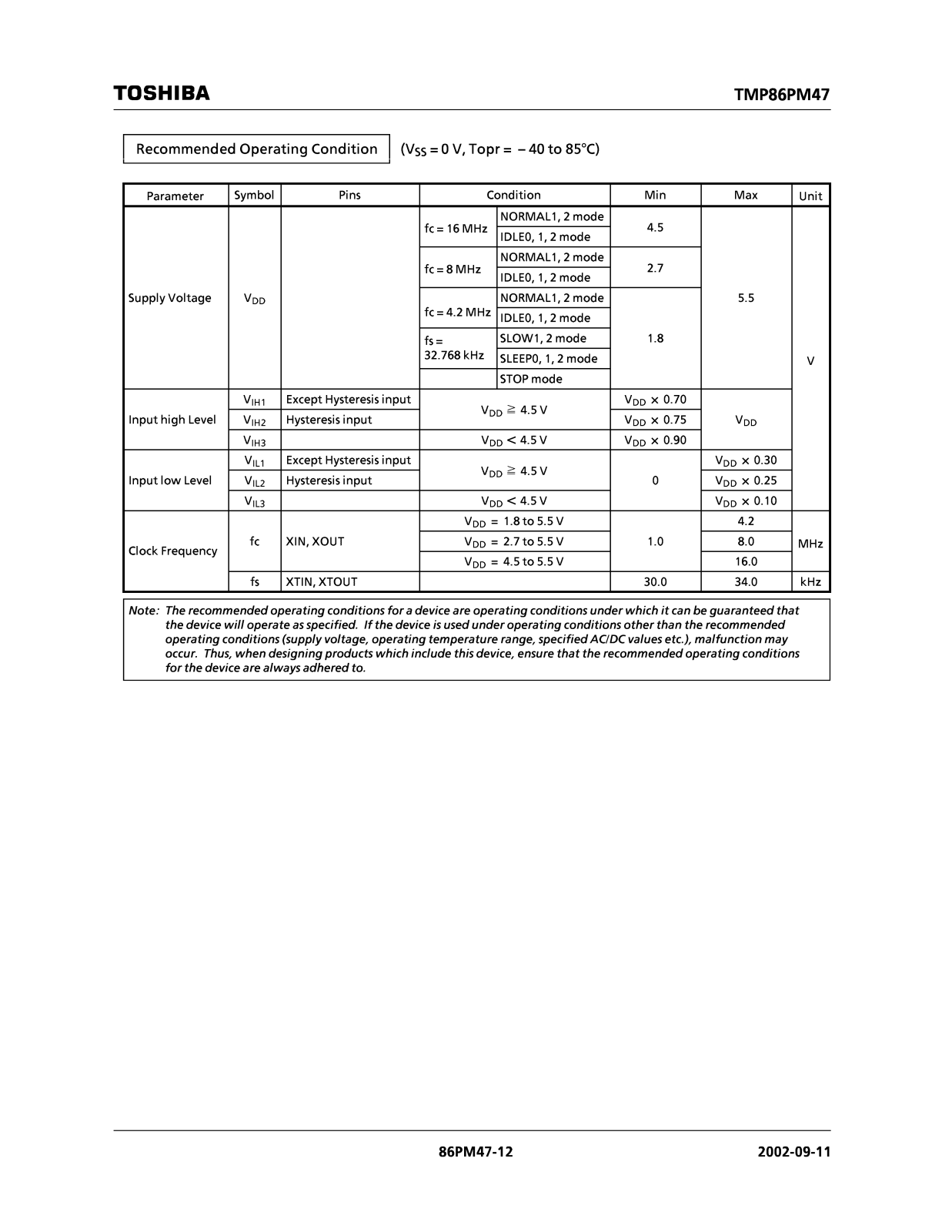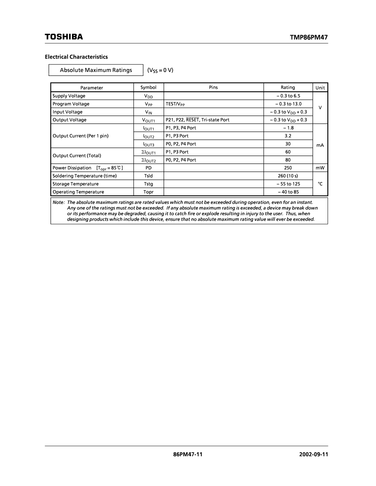 TOSHIBA TMP86PM47U User Manual