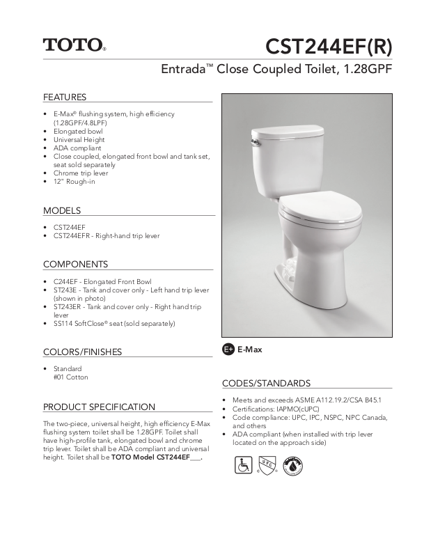 Entrada™ Close Coupled Toilet, 1.28GPF