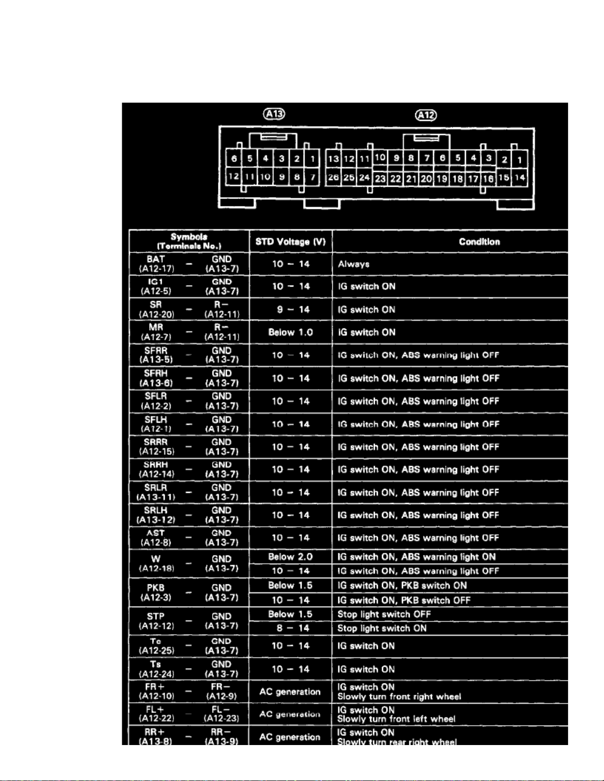 a. Disconnect the connector from the amplifier and inspect connector on wire harness side. as shown in the chart.