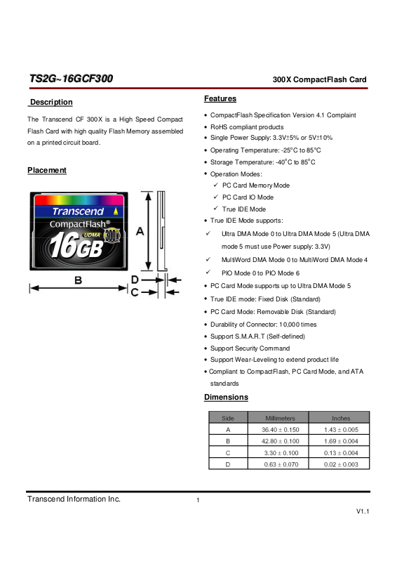 Above technical information is based on CFA standard data and tested to be reliable. However, Transcend makes no