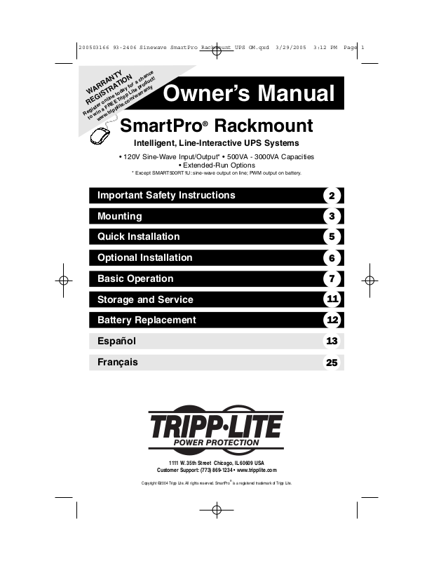 Replacement Battery Cartridges (R.B.C.). Visit Tripp Lite on the Web at www.tripplite.com to