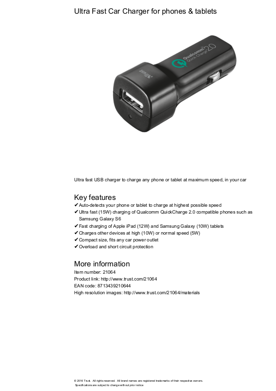 Ultra fast (15W) charging of Qualcomm QuickCharge 2.0 compatible phones such as