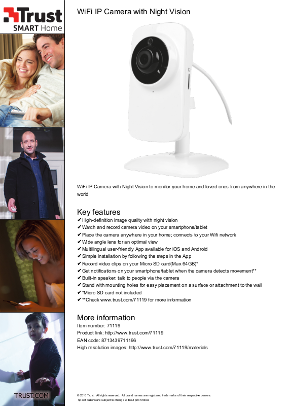 Place the camera anywhere in your home; connects to your Wifi network