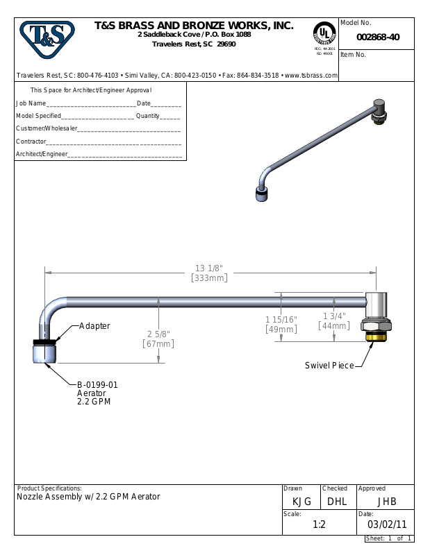Travelers Rest, SC: 800-476-4103 • Simi Valley, CA: 800-423-0150 • Fax: 864-834-3518 • www.tsbrass.com